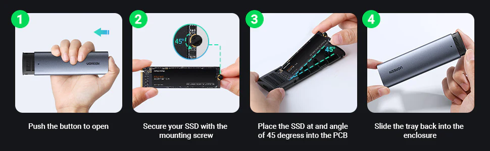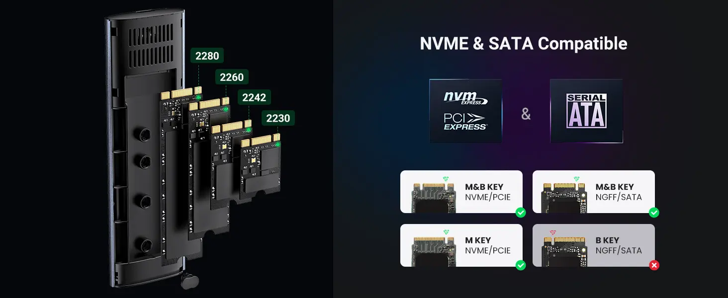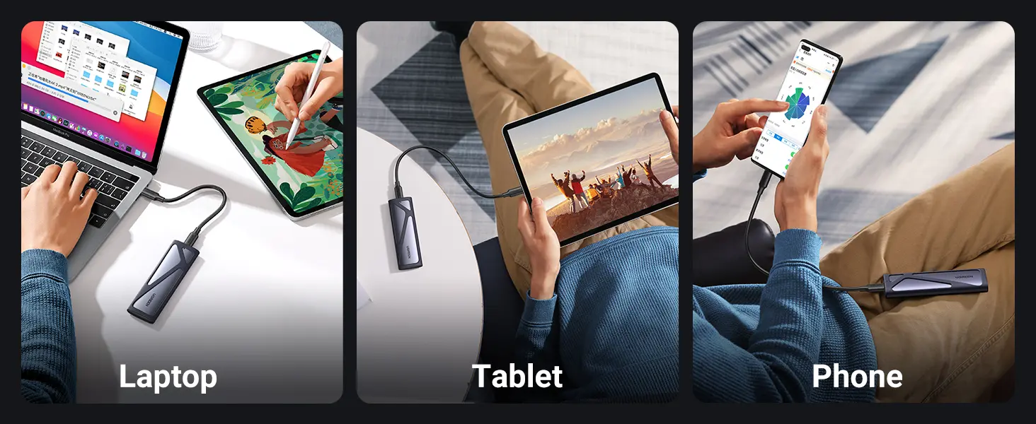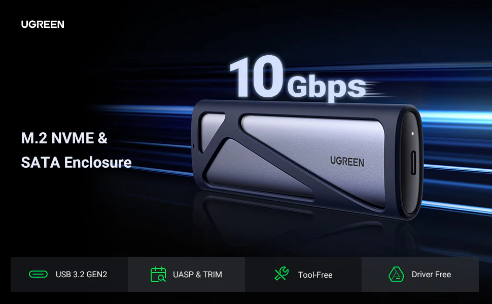 Gabinete De Duro Sata A Usb-C 3.2 M.2 Nvme Negro Cm400 Ugreen