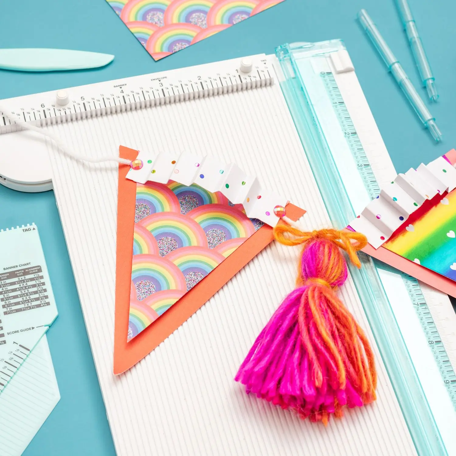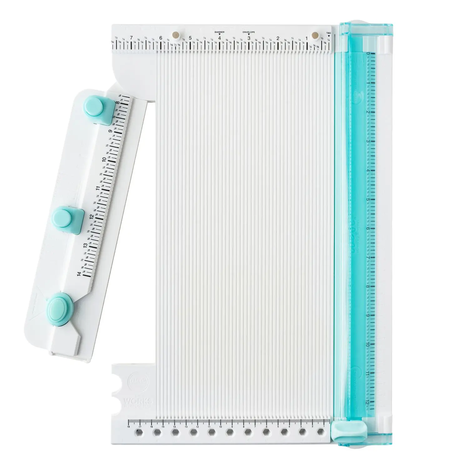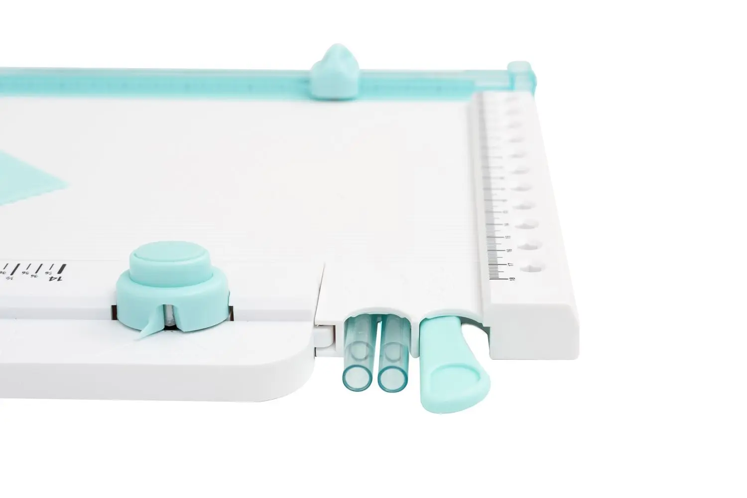 ¡Combina más de una docena de herramientas imprescindibles en un diseño práctico! Perfecto para recortar, marcar, pancartas, sobres, pestañas, etiquetas, pompones, borlas, lazos, estampados y más. Almacenamiento práctico para todos los accesorios. Este paquete de 12 x 17 pulgadas contiene una recortadora, una plegadora de huesos, una máquina para hacer pancartas, una para hacer etiquetas, una para hacer sobres, una tabla de puntuación, una para marcar pestañas, una prensa para sellos e imanes, una redondeadora de esquinas, una perforadora, una base magnética y un manual. Importado.