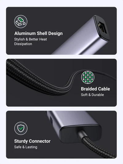 Hub Usb-C 4 Puertos + Gigabit Ethernet Negro 20932 Ugreen