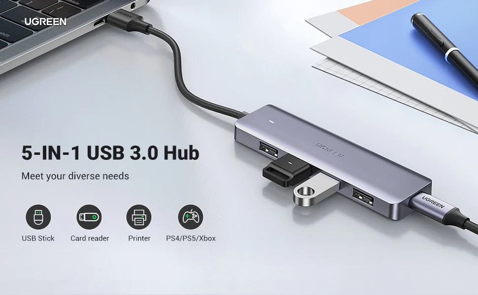 Hub Usb 3.0 4 Puertos Negro Cm219 Ugreen