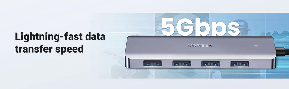 Velocidad de sincronización rápida de 5 Gbps: transmite datos a través de USB a hasta 5 Gbps, lo suficientemente rápido como para transferir una película HD en segundos.