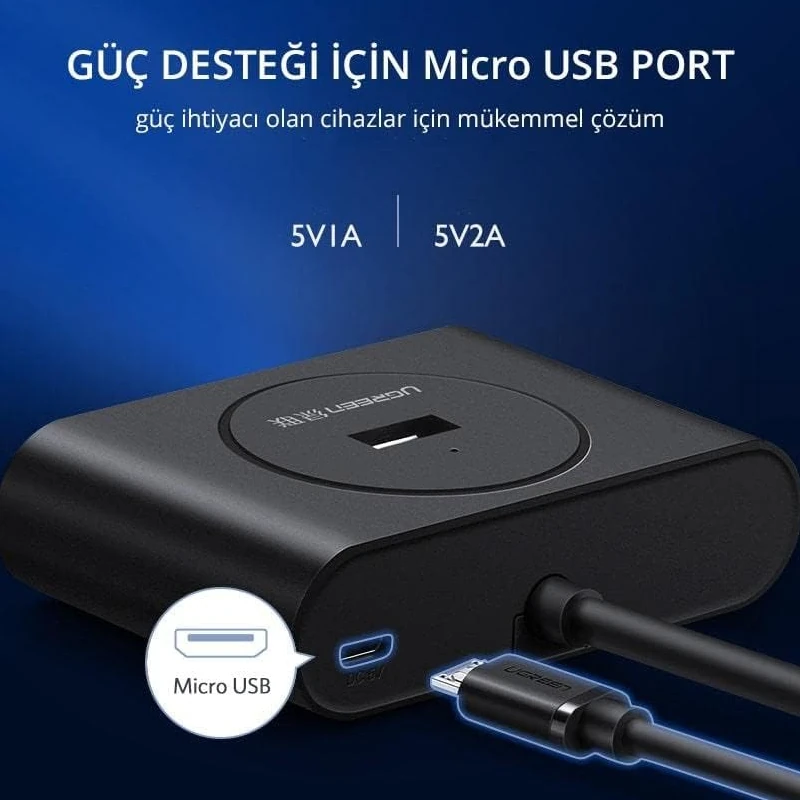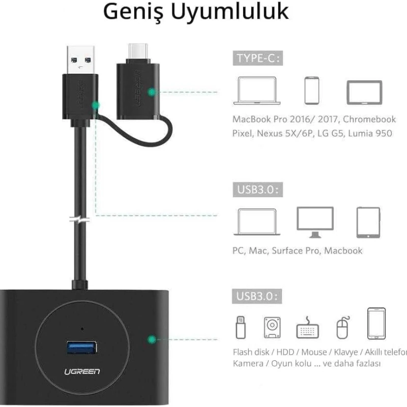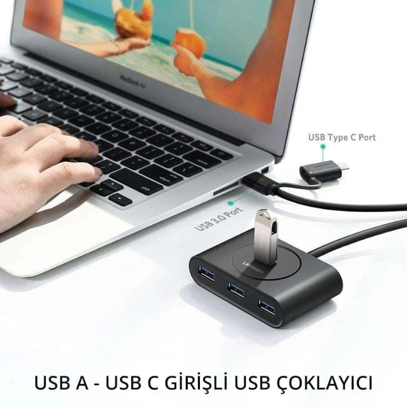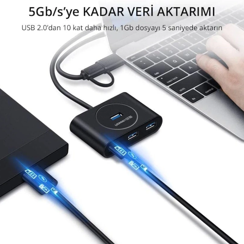 Hub Usb 3.0 4 Puertos + Usb-C 1M Negro Cr113 Ugreen