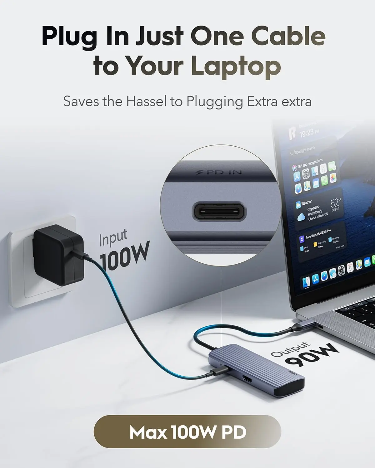 - 1× USB-C que recibe 100 W PD