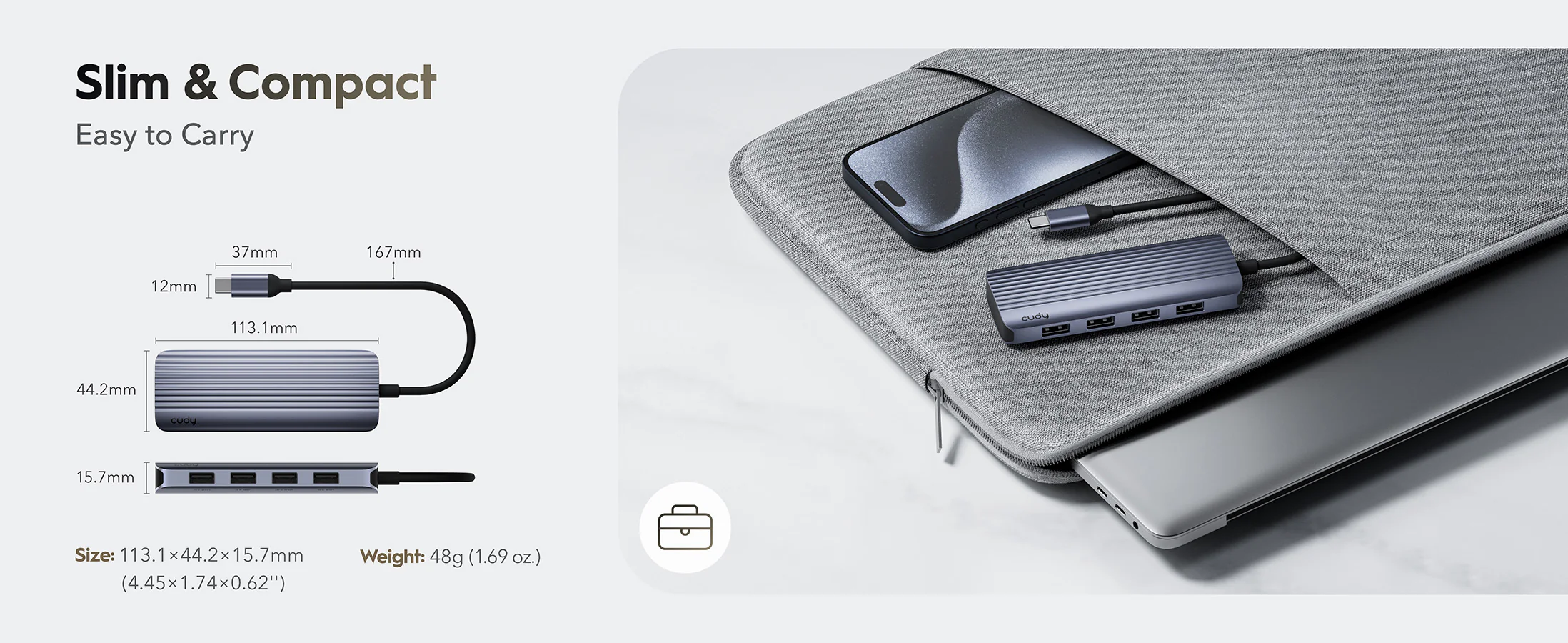 - 113,1×44,2×15,7 mm (4,45×1,74×0,62»)