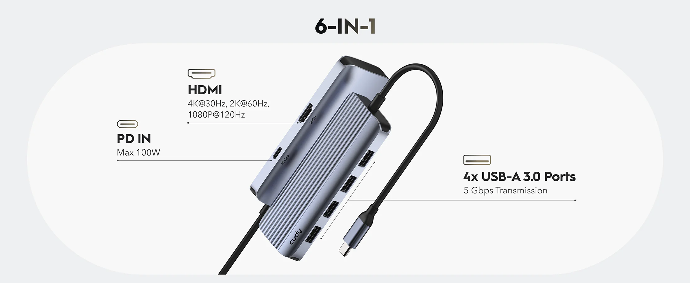 Hub Usb-C 6 Puertos Uh500 Plata Cudy