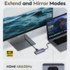 Hub USB-C Plug-and-Play para ampliar un puerto USB-C a HDMI y cuatro puertos USB-A, ideal para gente de negocios, profesores y estudiantes escolares.