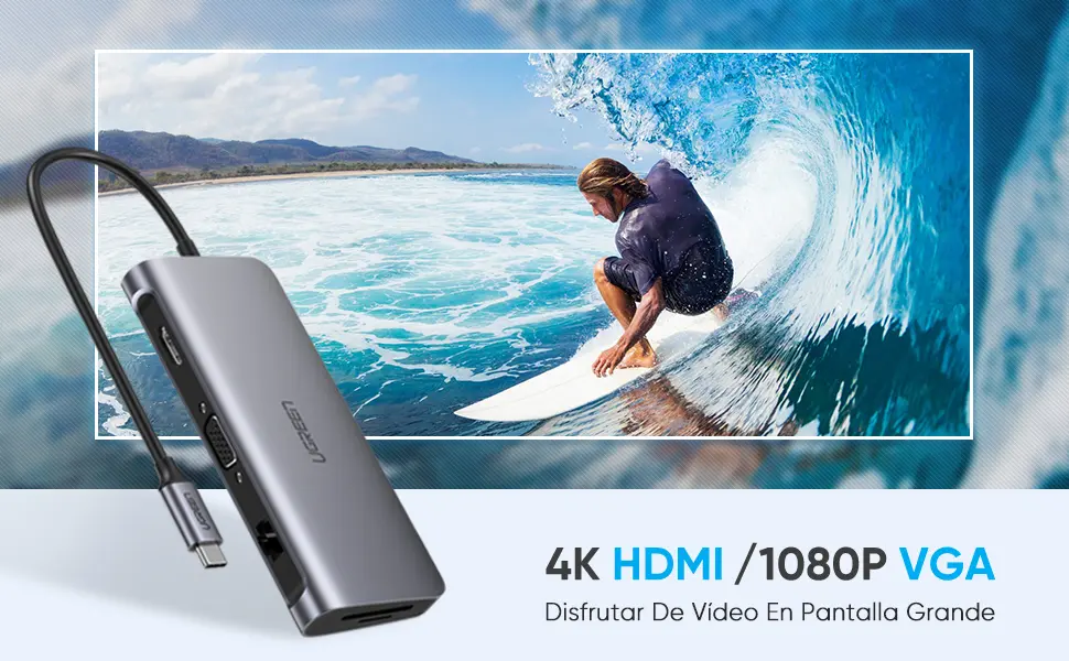 MÁS PUERTOS MÁS POTENTE: Multi adaptador USB C 3.1 combina las funciones de HUB USB 3.0, 4K@30HZ HDMI y 1080P@60HZ VGA salidas de vídeo, lector de tarjetas y Gigabit Ethernet adaptador