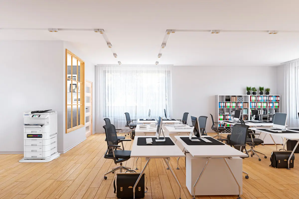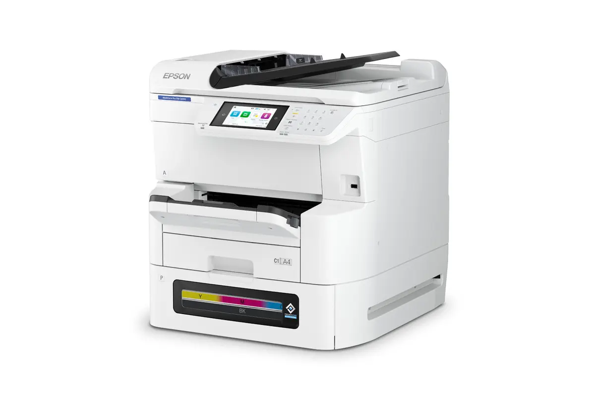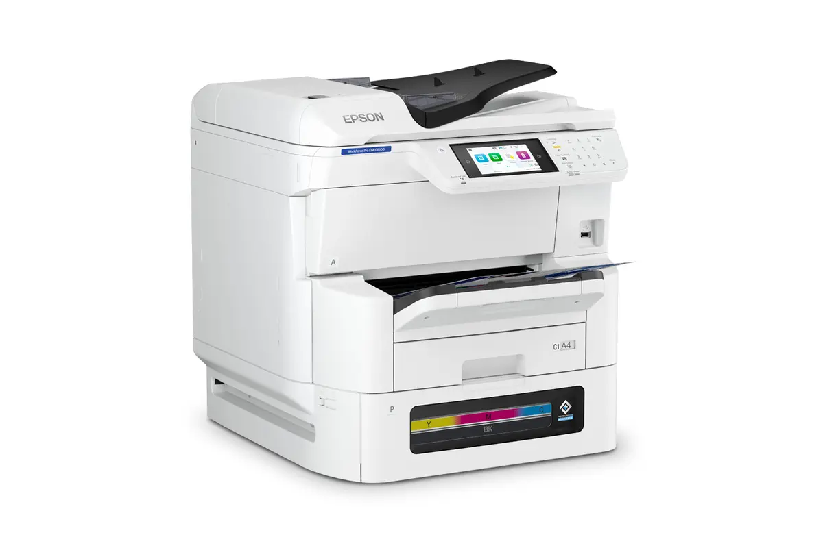 La impresora multifuncional WorkForce® Pro EM-C8100 ofrece versatilidad para los grupos de trabajo, con velocidades de impresión de hasta 25/24 ppm ISO (negro/color) con calidad profesional, escaneo dúplex de hasta 45 imágenes por minuto.