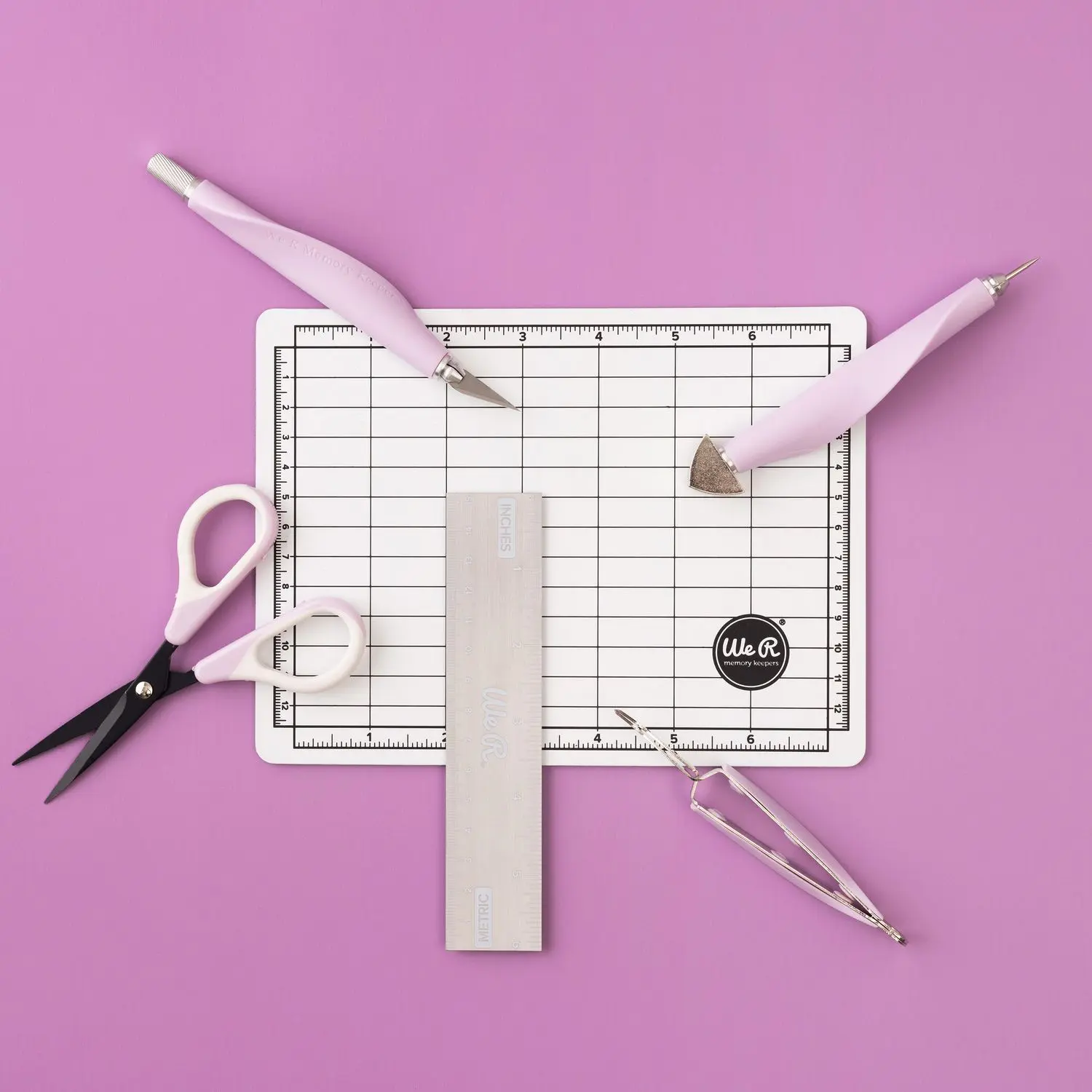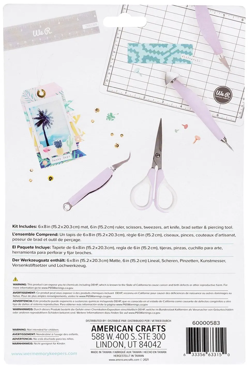 Este mini kit de herramientas lleva tus proyectos de principio a fin con sus herramientas versátiles y su práctico tamaño mini, ahora en un precioso color lila. Perfecto para álbumes de recortes, tarjetas, proyectos de decoración del hogar, bricolaje y mucho más. Este paquete contiene un tapete de 6×8 pulgadas, una regla de 6 pulgadas, un par de tijeras de precisión, un par de pinzas, un cuchillo para arte y una herramienta para perforar y clavar. ADVERTENCIA: Este producto puede exponerlo a sustancias químicas, incluido el DEHP, que el estado de California reconoce como causante de cáncer y defectos de nacimiento u otros daños reproductivos. Para más información vaya a . Importado.