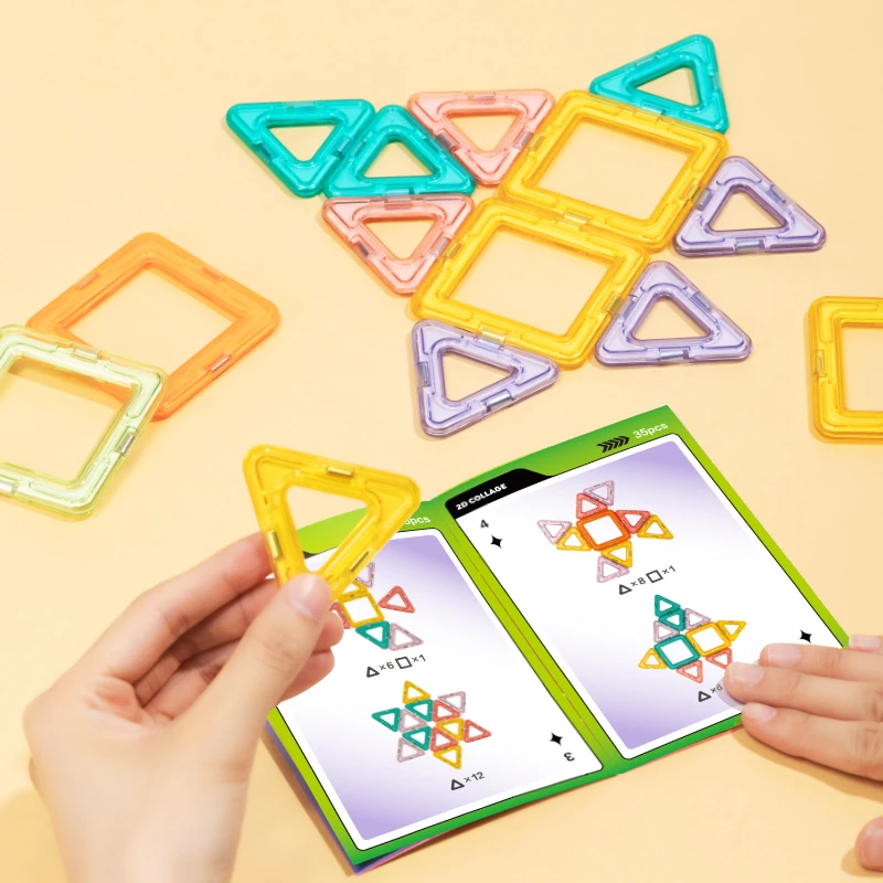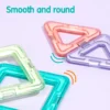 Set de piezas geométricas magnéticas en colores brillantes para armar figuras, estimular la creatividad y el aprendizaje. Ideal para niños en etapa escolar y preescolar.