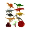 Set de dinosaurios con accesorios, ideal para recrear escenas prehistóricas y estimular la imaginación infantil.
