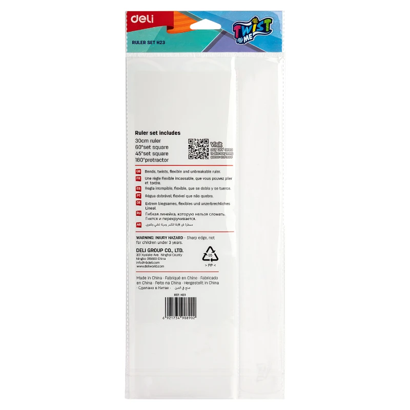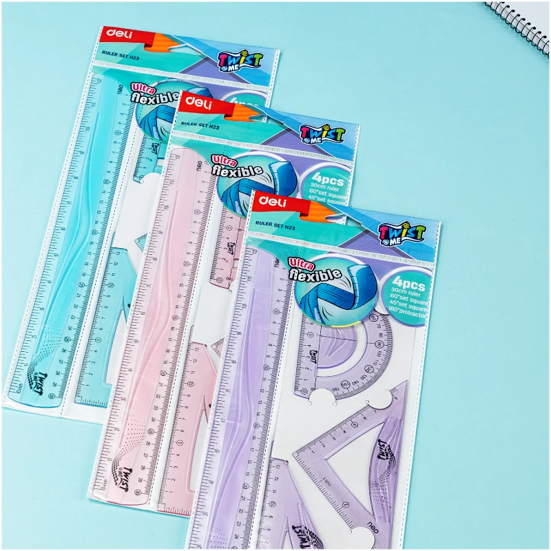 Juego Geometrico 30Cm 4 Piezas Flexible Deli Surtido