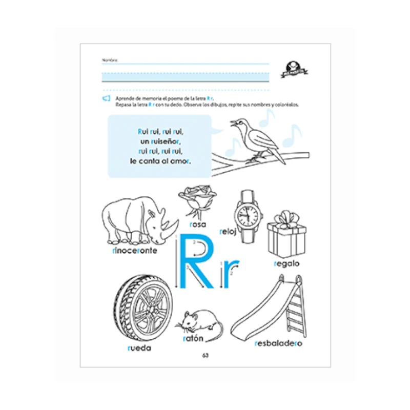 Libro que enseña y refuerza todas las letras del abecedario y sílabas directas. Se enfoca principalmente en la enseñanza de la fonética y la comprensión de lectura, pero también practica los trazos de todas las letras, la motricidad fina y el pensamiento creativo.