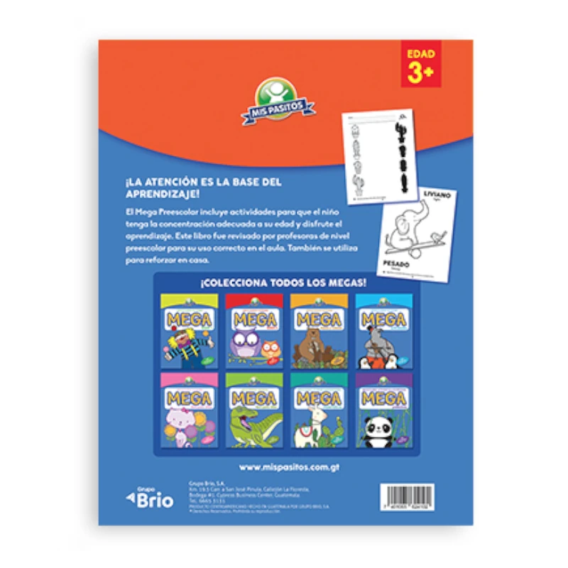 Libro que refuerza temas de nivel preescolar. Se enfoca en vocabulario y tres destrezas: motricidad fina, pensamiento creativo y percepción visual.