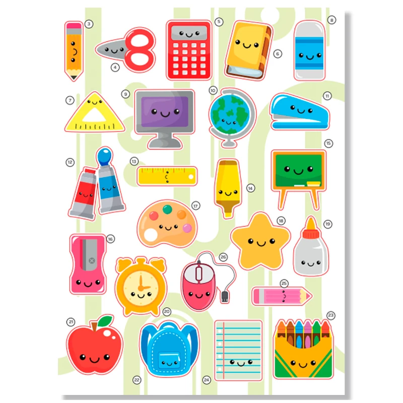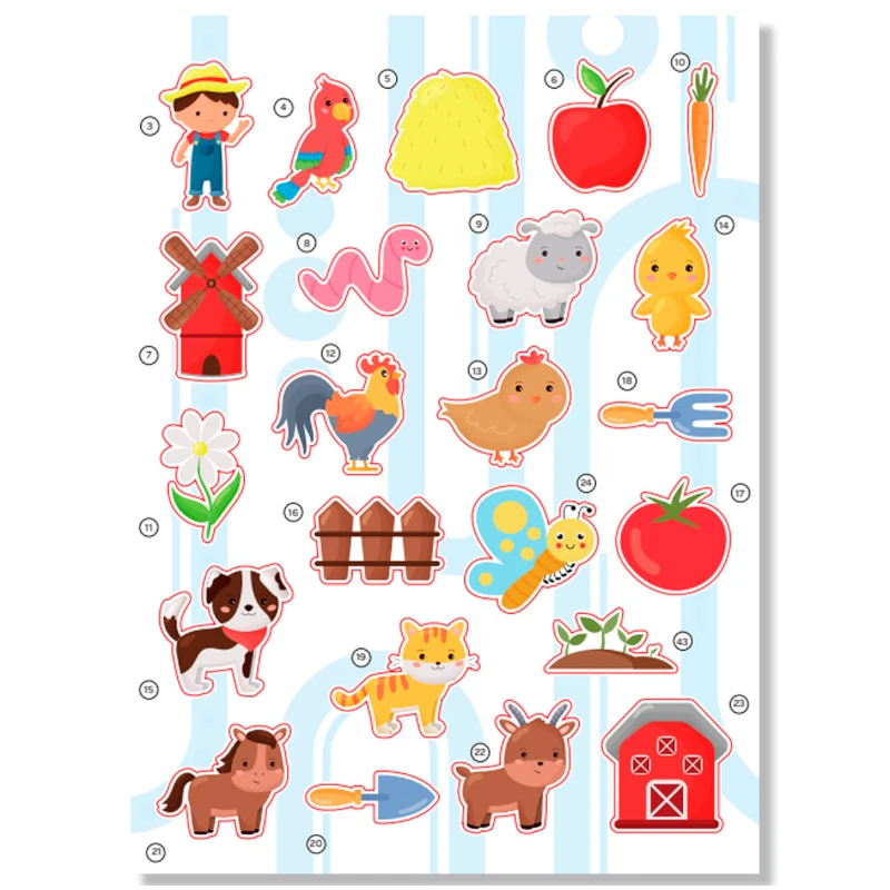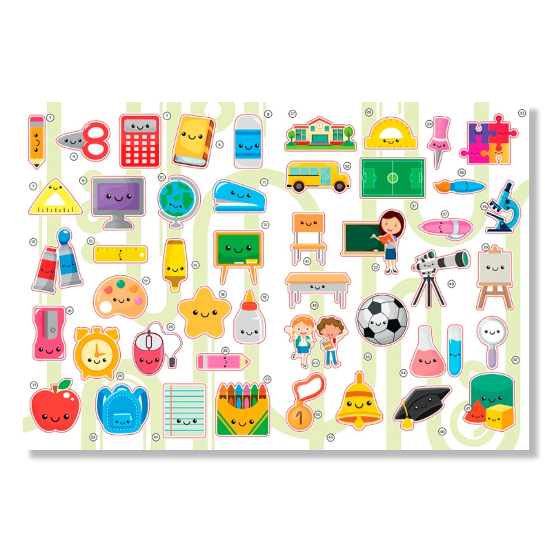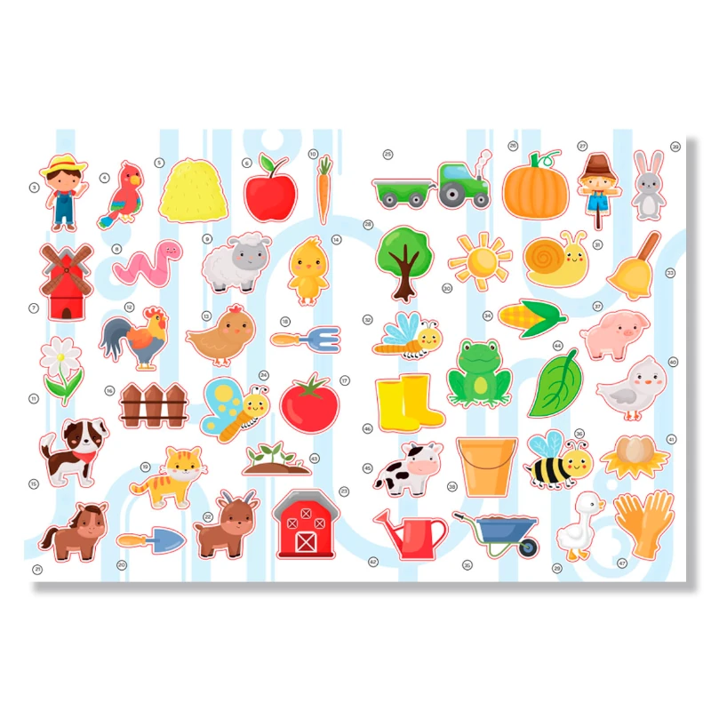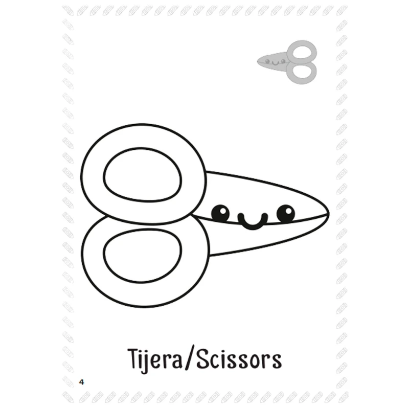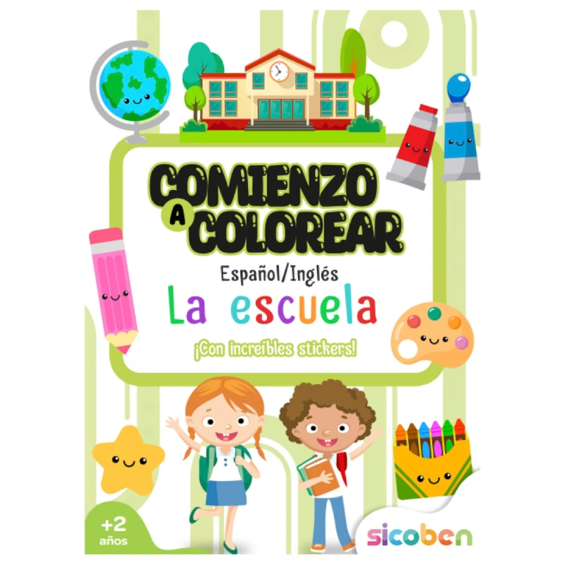 Hermosa colección con Stickers para colorear, con imágenes grandes, en español e inglés.