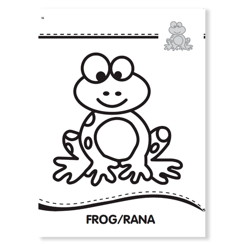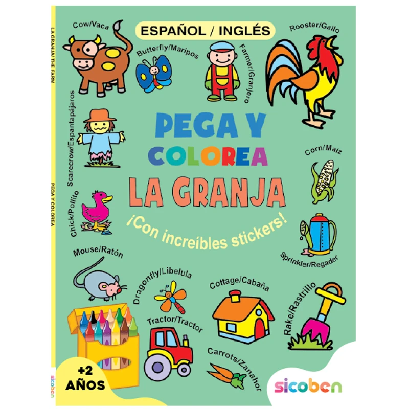 Libro de Colorear – Tapa Blanda – 4 Portadas: La Ciudad, Alimentos, La Granja, Animales – 48 paginas + 2 paginas de Stickers – Ingles Espanol – Medidas 20×28 cms – Edad +3