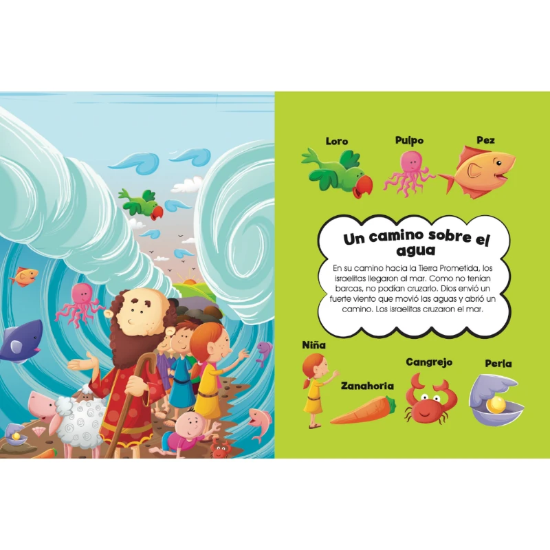 Historias bíblicas resumidas con hermosas ilustraciones que cautivarán a los niños. Además, cada página incluye un divertido juego de Busca y Encuentra, fomentando la curiosidad por estos relatos fundamentales.