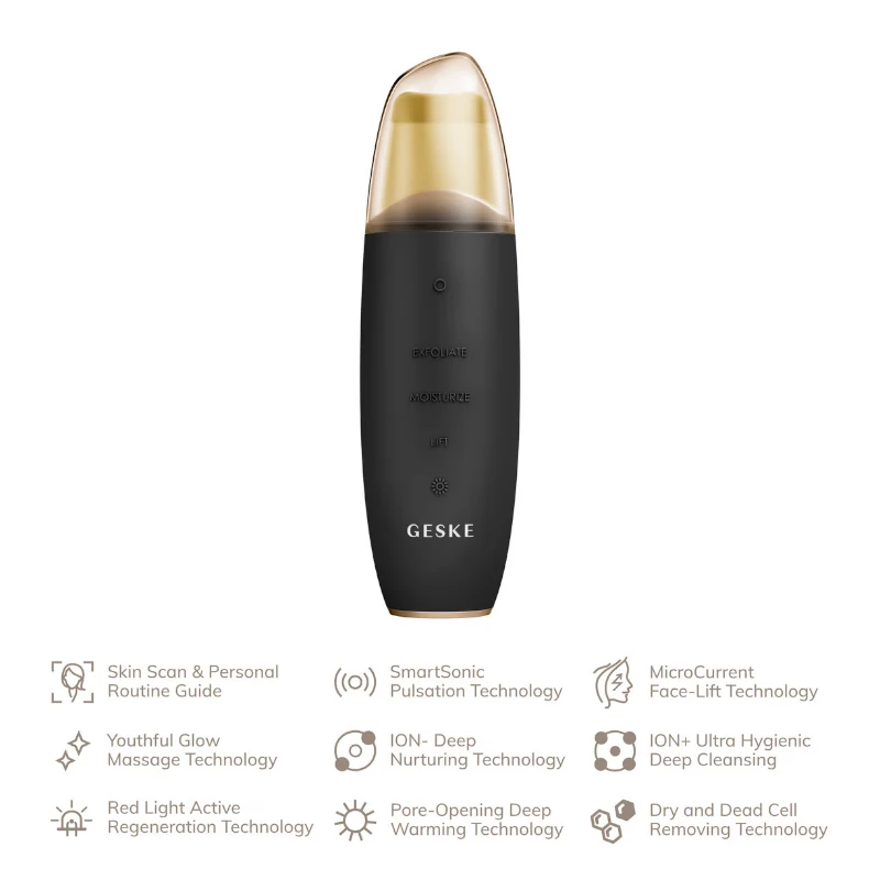 El depurador de piel con microcorrientes y eliminador de puntos negros 9 en 1 de Geske Gray combina funciones multifuncionales para la limpieza y el rejuvenecimiento de la piel. Con tecnología de microcorrientes, esta herramienta es fácil de usar y eficaz, lo que garantiza una limpieza profunda. ¡Renueva tu rutina de cuidado de la piel con Geske!