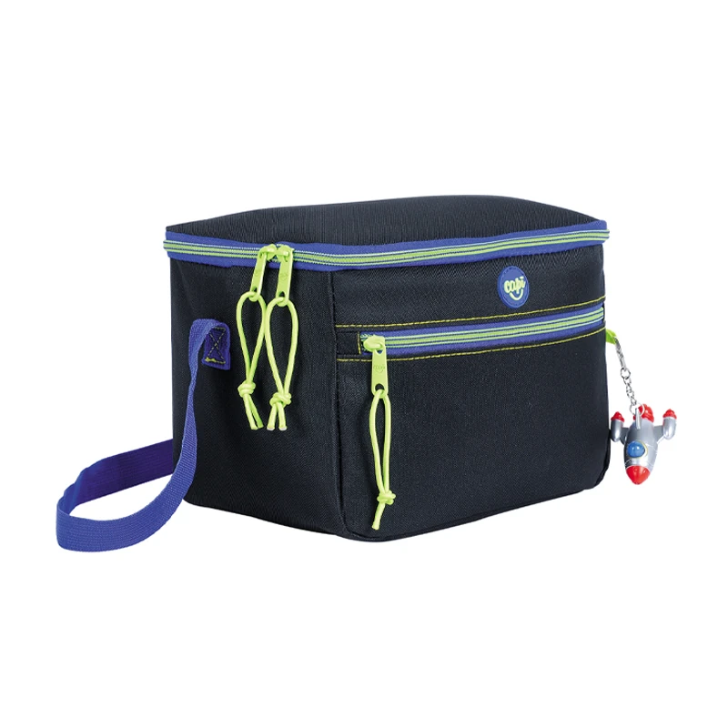 Ideal para que los consentidos de la casa lleven sus alimentos a la escuela o de paseo de la forma más cómoda y segura, manteniéndolos frescos gracias a su compartimento térmico. Cuenta con un compartimiento principal con gran espacio de almacenamiento De regalo, un práctico llavero de cohete con luz incorporada. Costuras y cierre de alta calidad y durabilidad con haladores de metal en color verde menta manzana. Material térmico. Asa cómoda. Cinta ajustable. Elaborado en poliéster.