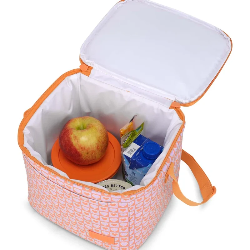 Super Snack come bolsas marrones para el almuerzo. Guarde los favoritos de los amantes de la comida en un compartimento principal aislado y sin BPA. Guarde los artículos en el bolsillo frontal de fácil acceso. Una correa para el hombro ajustable o un asa de transporte te permiten comer y correr con estilo.