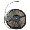 Tira flexible LED de una sola fila; se clasifica para utilizar un transformador de 12 V, 2 amperios y 24 W para alimentar la tira.
