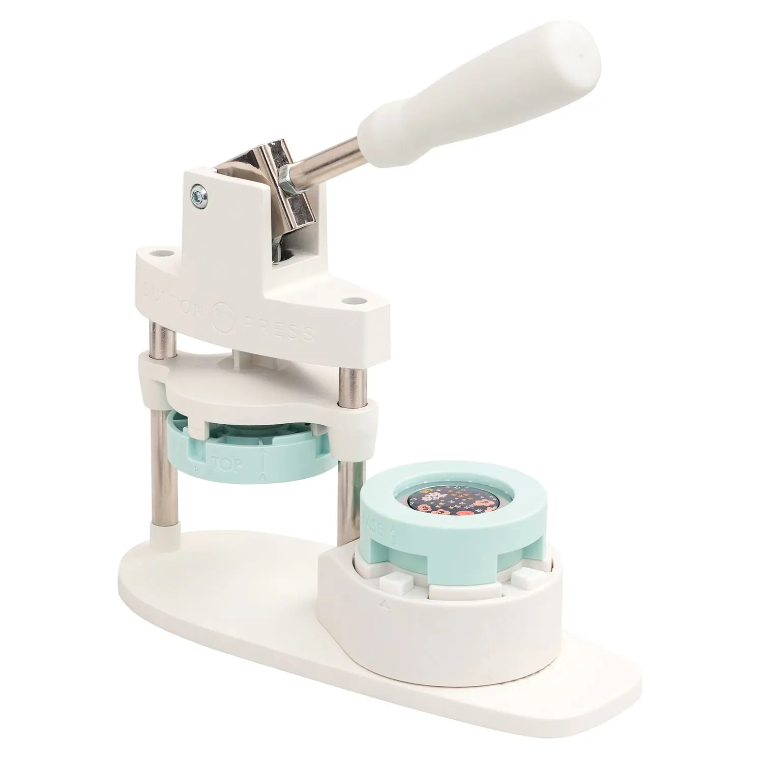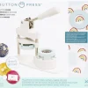 Cree fácilmente botones, imanes, llaveros y más con Button Press. Corta su papel al tamaño correcto para adaptarse a su proyecto. El mango es ergonómico y fácil de presionar. Crea tus botones con papel, cartulina y tela. Este paquete de 10,25 x 9,5 x 4,5 pulgadas contiene un fabricante de botones, inserciones de corte, un troquel circular mediano, inserciones de presión medianas, cinco mylar, cinco carcasas de botones y cinco pasadores. Importado.