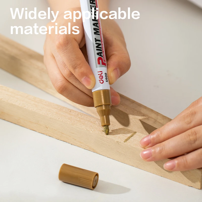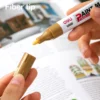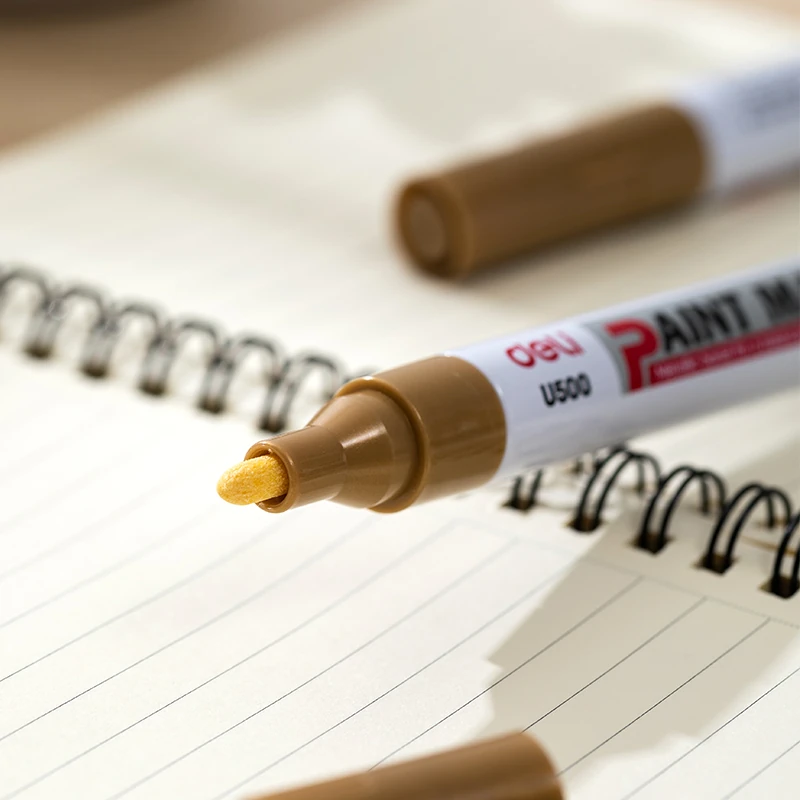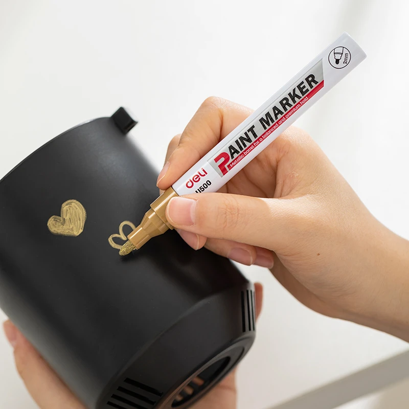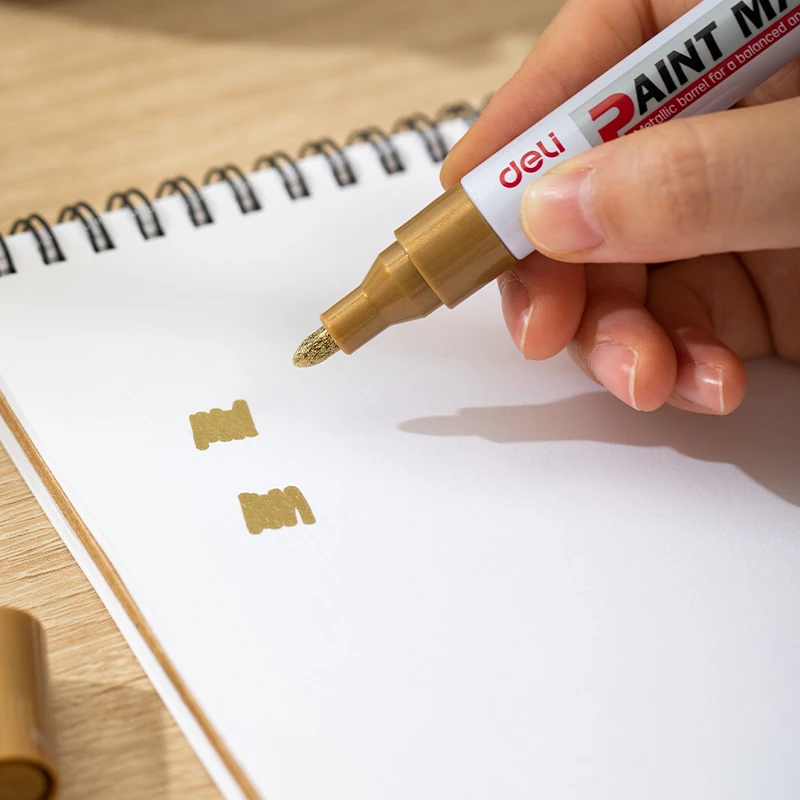 Marcador metálico ideal para superficies lisas y oscuras. Su tinta dorada opaca aporta un acabado elegante y profesional.