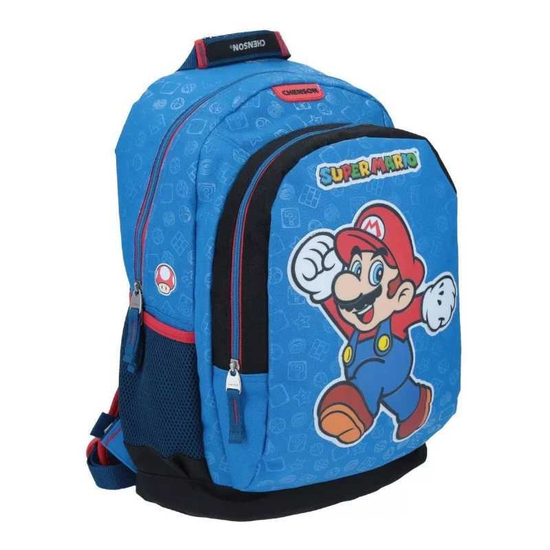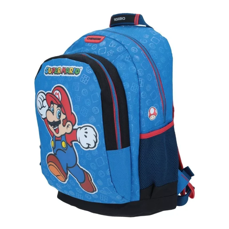 Mochila grande azul CHENSON MARIO BROS MUVI, Bolsillo frontal con cierre.-Bolsillos laterales.