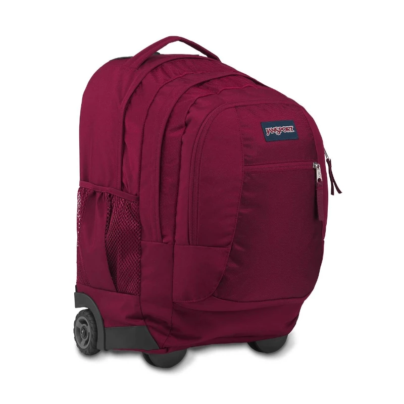 Para una vida en movimiento, la mochila con ruedas JanSport Driver 8 se convierte de mochila en mochila con ruedas con correas para los hombros ocultas. Esta mochila con ruedas para computadora portátil cuenta con una funda acolchada para computadora portátil de 15 pulgadas, un bolsillo lateral para botella de agua y un bolsillo organizador frontal.