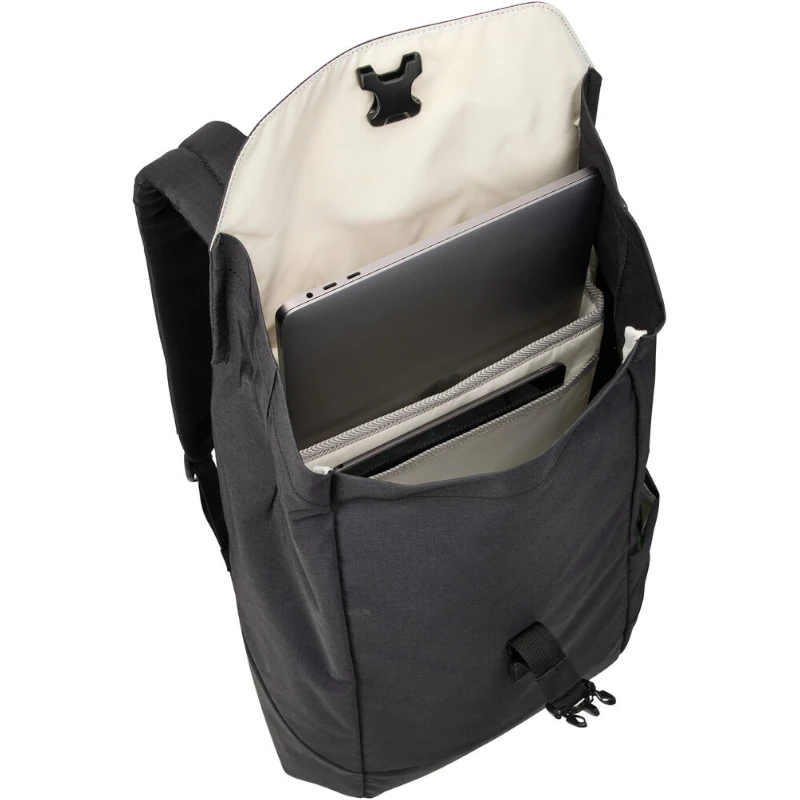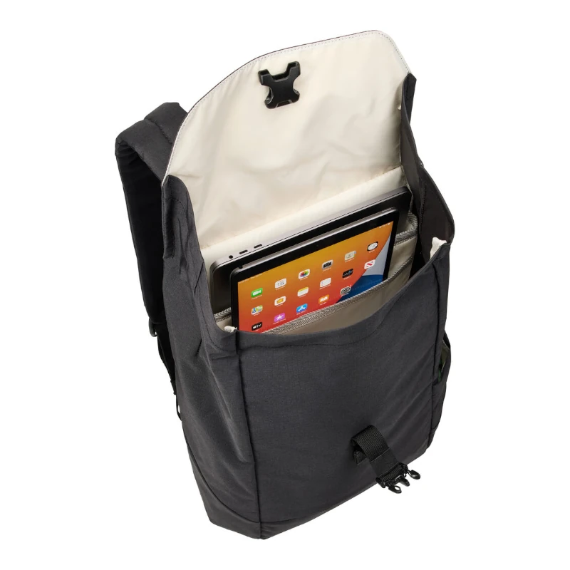 - El bolsillo acolchado elevado protege una computadora portátil de 14″ o una MacBook de 16″
