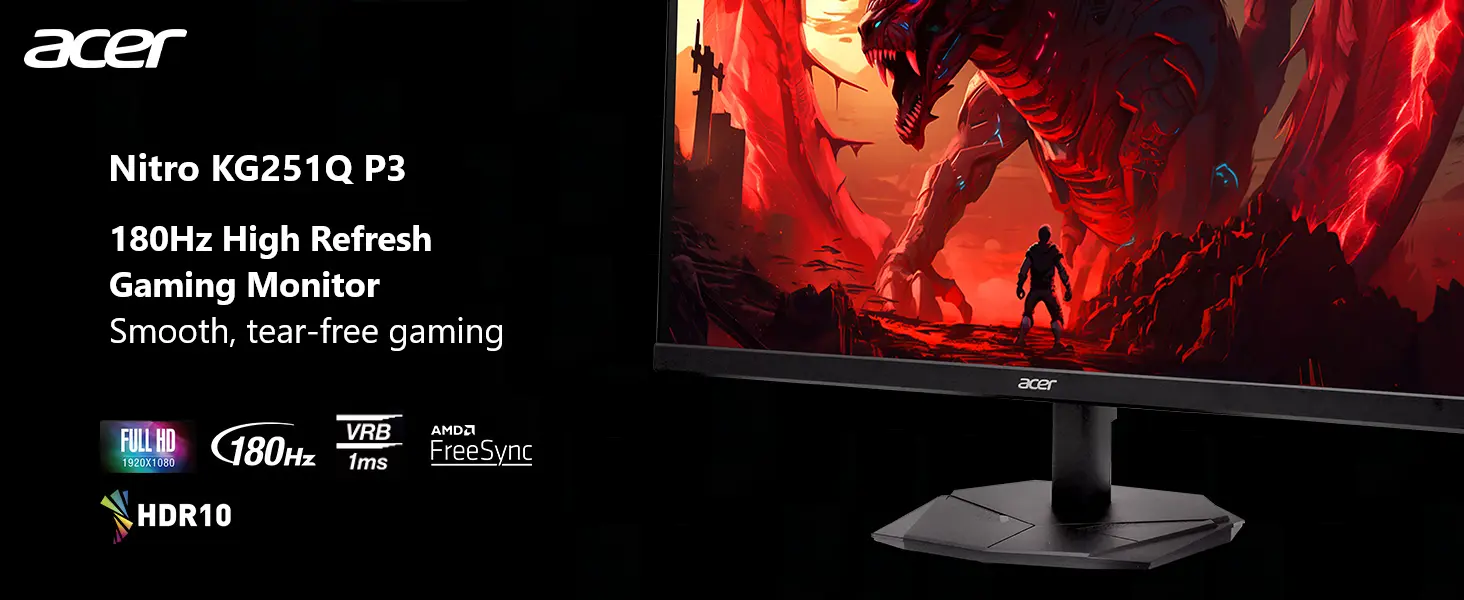 Imágenes de calidad: El monitor KG251Q de 24.5″ con resolución Full HD de 1920 x 1080 en una relación de aspecto de 16:9 presenta imágenes impresionantes de alta calidad con excelente detalle.
