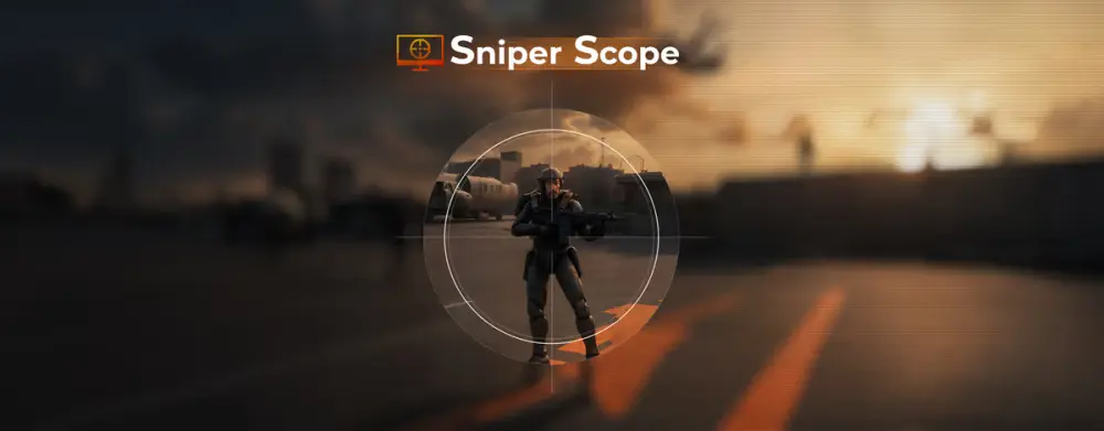 Sniper Scope ofrece zoom de múltiples etapas para disparos de precisión de largo alcance en juegos FPS.
