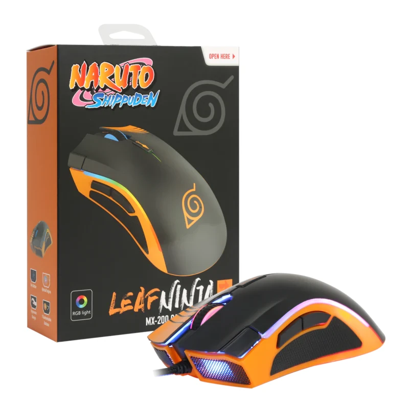 Mouse Checkpoint Gaming Usb Negro Rgb Mx-200 Naruto Leaf Ninja Dpi 10000