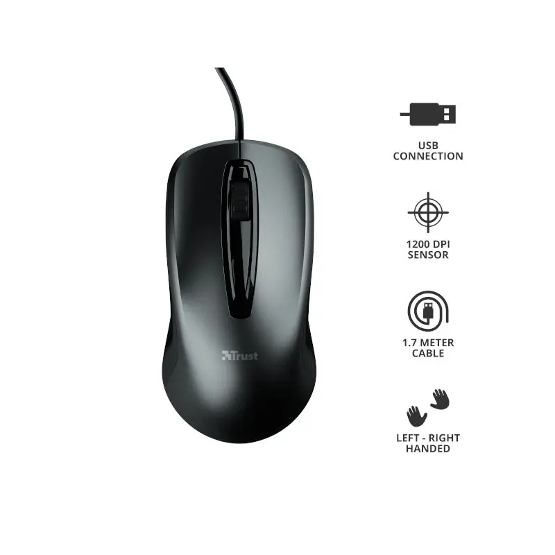Mouse Trust Carve Usb Negro Optico Ambidiestro
