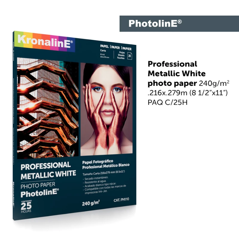 Papel Foto 8.5X11 25Hjs Profesional Metallic 240Gr Ph110 Kronaline