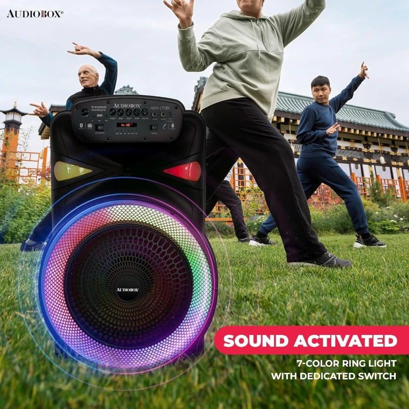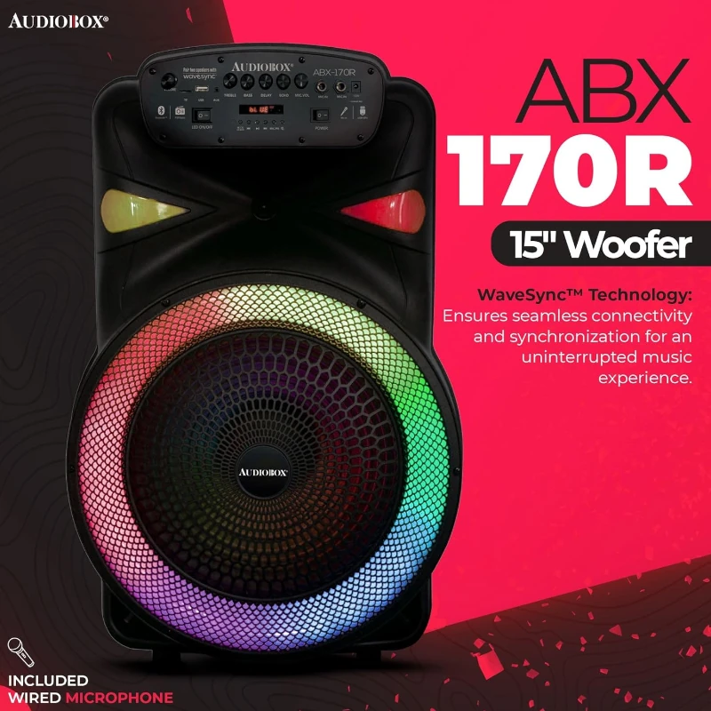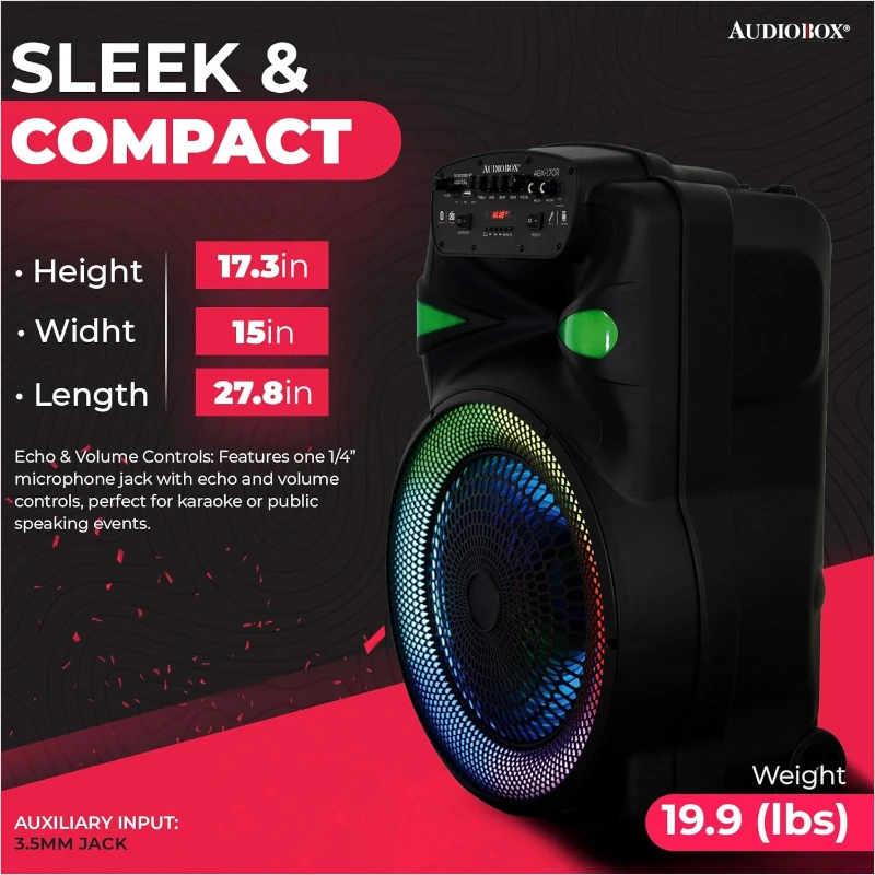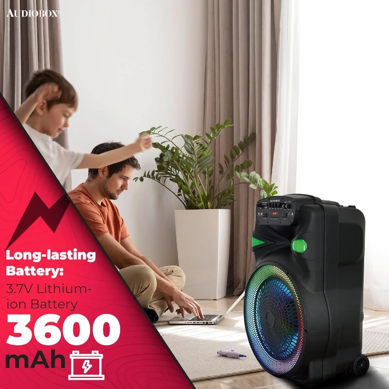 Parlante Amplificador 15 4000W Blth Usb FM Luces Led+Mic Audiobox