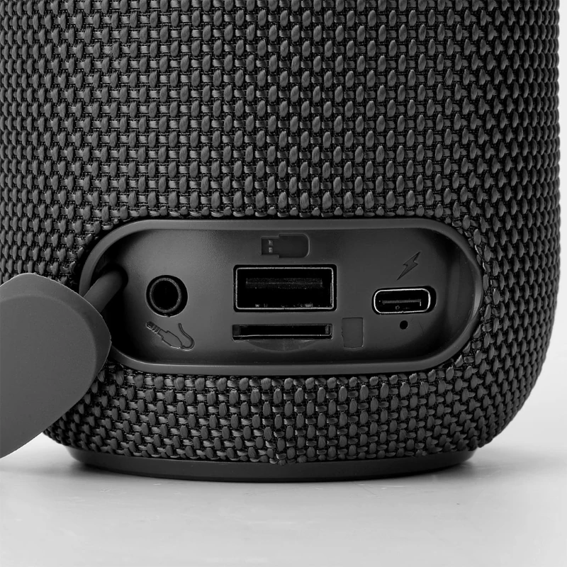 Ofrece conectividad total mediante Bluetooth, USB Tipo C y Tipo A, ranura para TF card (MicroSD) y entrada auxiliar de 3.5 mm. Además, su batería de 3000 mAh asegura largas horas de reproducción continua.