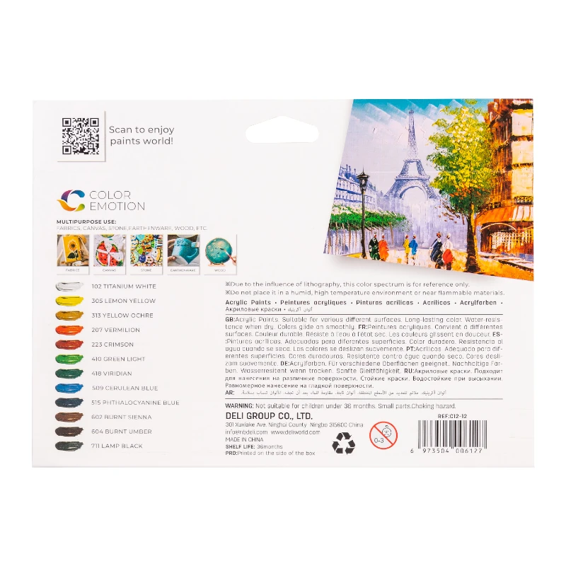 La Pintura Acrílica 12 Tubos 12ml Deli es una opción versátil y económica para dar vida a tus proyectos artísticos. Ya sea que estés pintando en casa, en la escuela o en un taller de arte, esta pintura acrílica te brindará resultados profesionales y duraderos. Añade un toque de color y creatividad a tus obras con esta pintura de calidad.