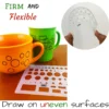 - Plantilla multiusos: contiene círculos, cuadrados, triángulos, rectángulos y hexágonos con líneas centrales proporcionadas, hecho de plástico transparente duradero y flexible para dibujar en superficies irregulares
