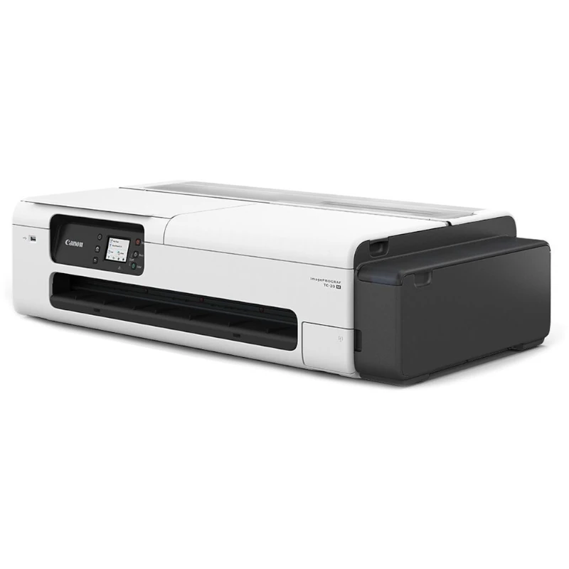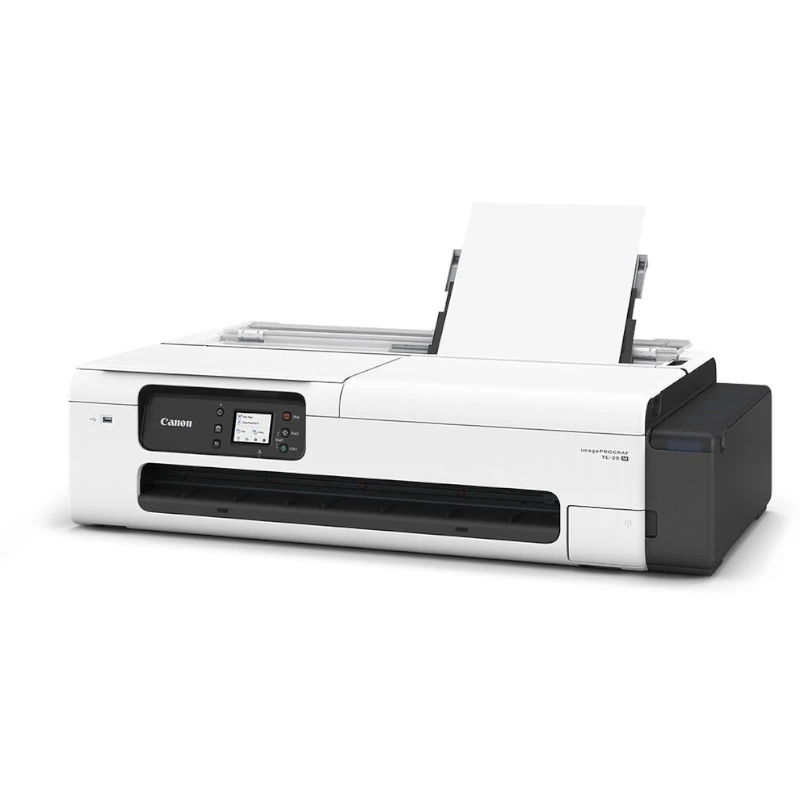El Plotter Canon imagePROGRAF TC-20M de 24″ es un dispositivo de impresión de alta calidad que utiliza tecnología de inyección de tinta. Este modelo es capaz de imprimir en colores negro, cian, magenta y amarillo, ofreciendo una resolución máxima de 2400 x 1200 DPI, lo que garantiza resultados nítidos y detallados.