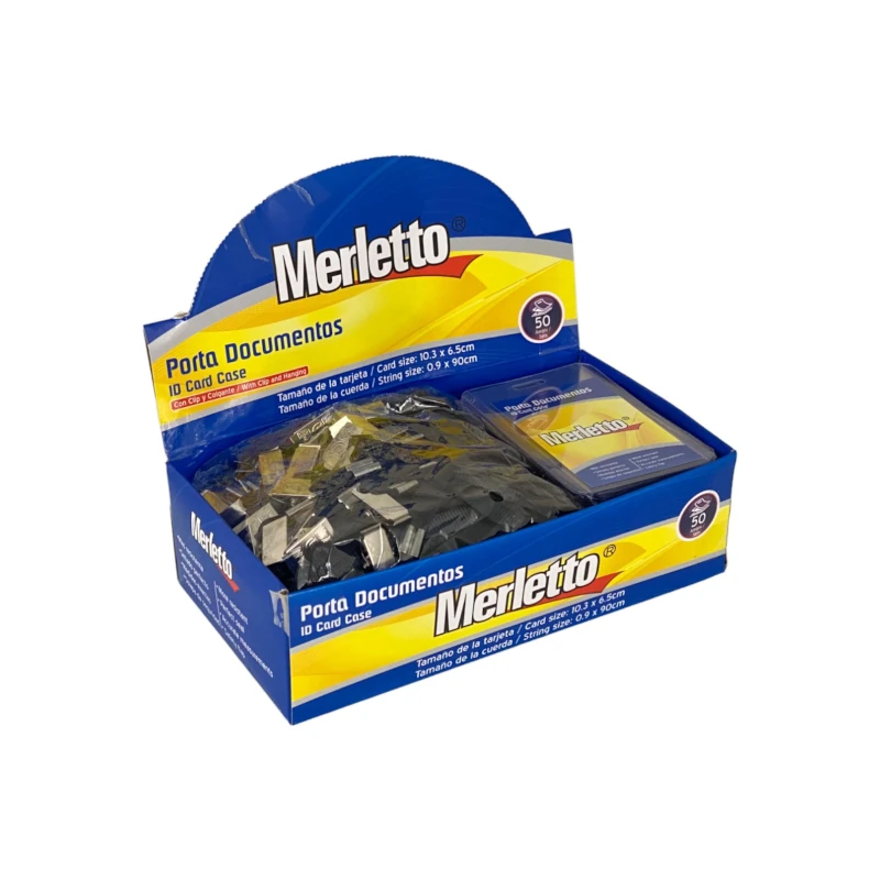 Porta Carnet Plastico Paquete50 Con Clip Y Cord Vertical Negro Merletto