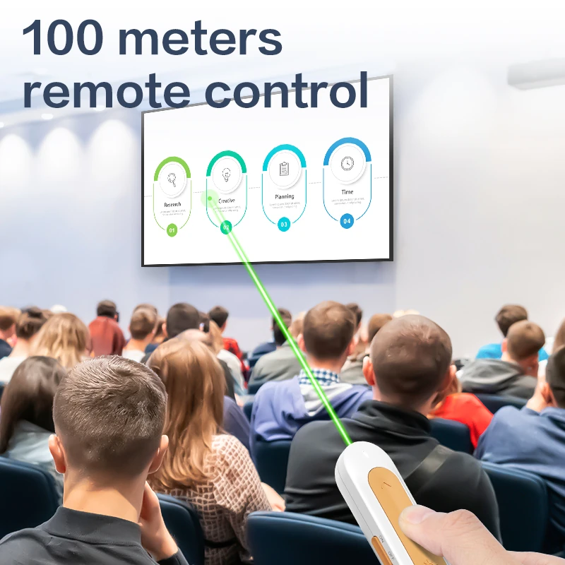 Controla tus presentaciones con facilidad gracias a este presentador inalámbrico con láser verde, ideal para aulas, oficinas y conferencias.