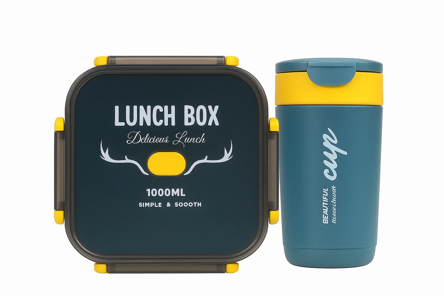 Set práctico de lonchera con tapa hermética y termo incluido, ideal para llevar tus comidas y bebidas a cualquier lugar.
