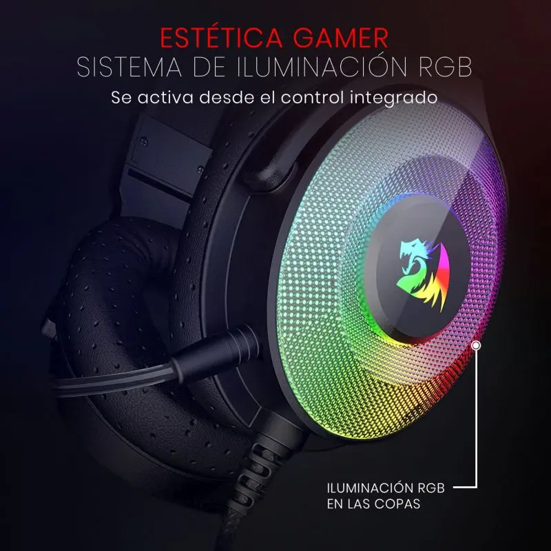 Audifono Redragon Gaming Pandora 3.5Mm Negro Con Microfono Rgb H350