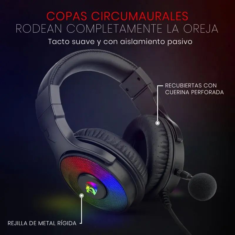 Escuche y chatee con amigos en este auricular para juegos Redragon Lamia, equipado con diafragmas de 50 mm, conseguimos un sonido estéreo definido y graves excelentes, mejoran la claridad del sonido y le proporciona un campo de audio fenomenal para escuchar música y lo hace valioso para varios juegos.