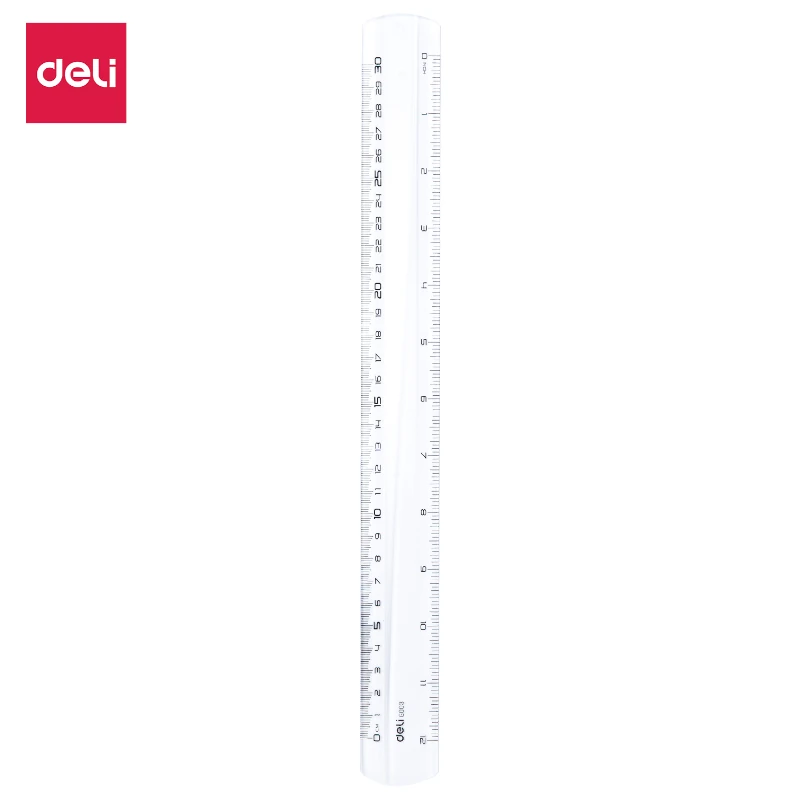 La regla de plástico transparente de 30 cm de la marca DELI es un elemento esencial para cualquier estudiante o profesional que requiera mediciones precisas en sus trabajos escolares o de oficina. Fabricada con material de alta calidad, esta regla es resistente y duradera, garantizando un uso prolongado sin deterioro.