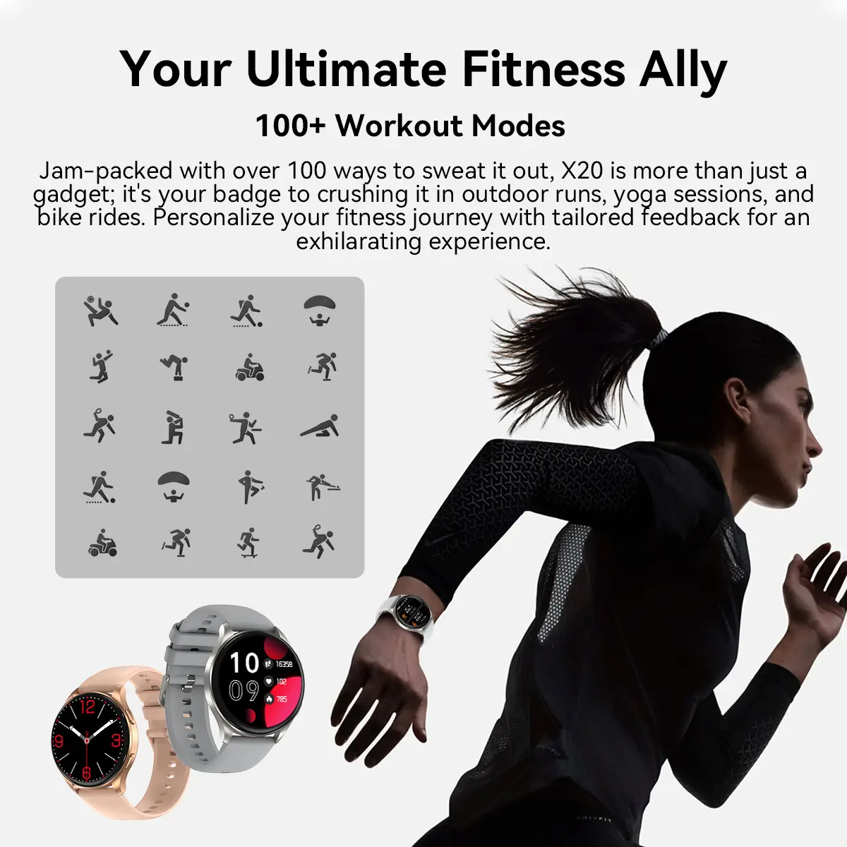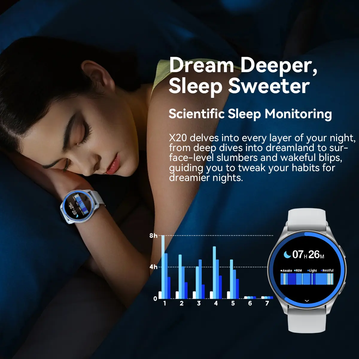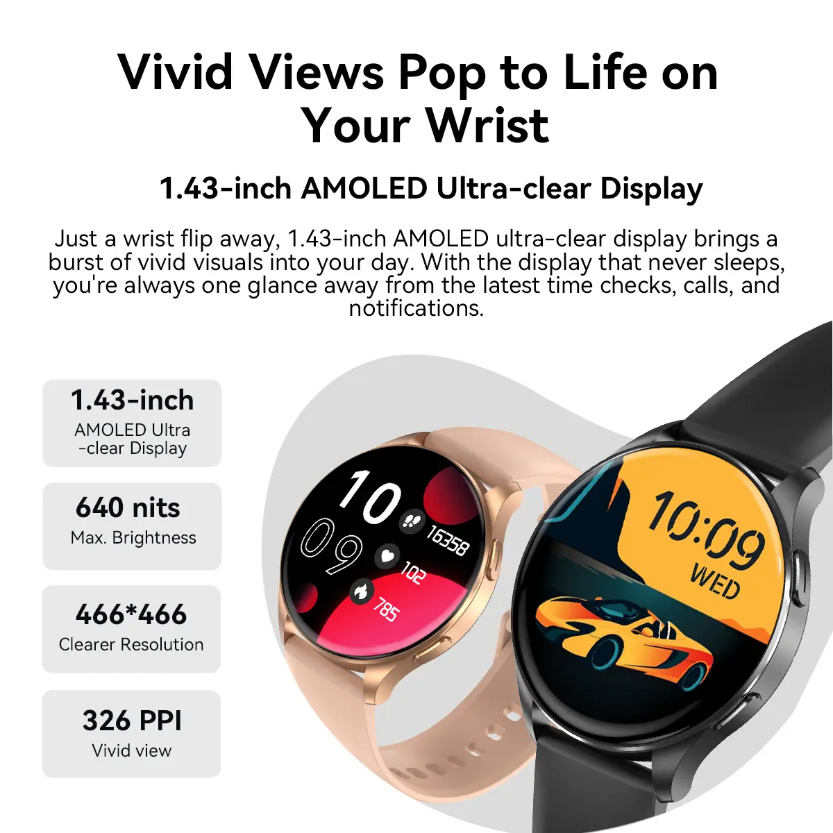 Blackview X20, OLED 466×466 de 1,43 pulgadas, batería de 380 mAh, monitor de oxígeno + monitoreo de frecuencia cardíaca, notificaciones de llamadas y SMS, dorado