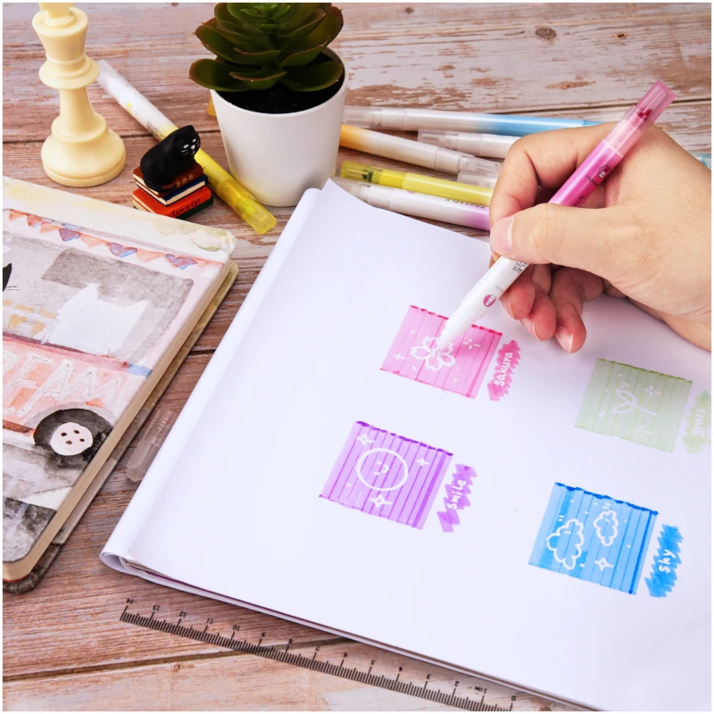 - Surtido de 6 tintas Fluorescentes, ideales para resaltar, tomar notas, llevar un diario y dibujar.
