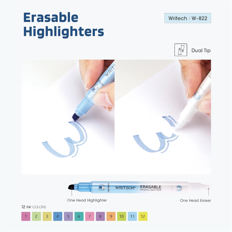 - Diseño de cabezales dobles, un cabezal es resaltador y con el otro cabezal puede borrar errores.