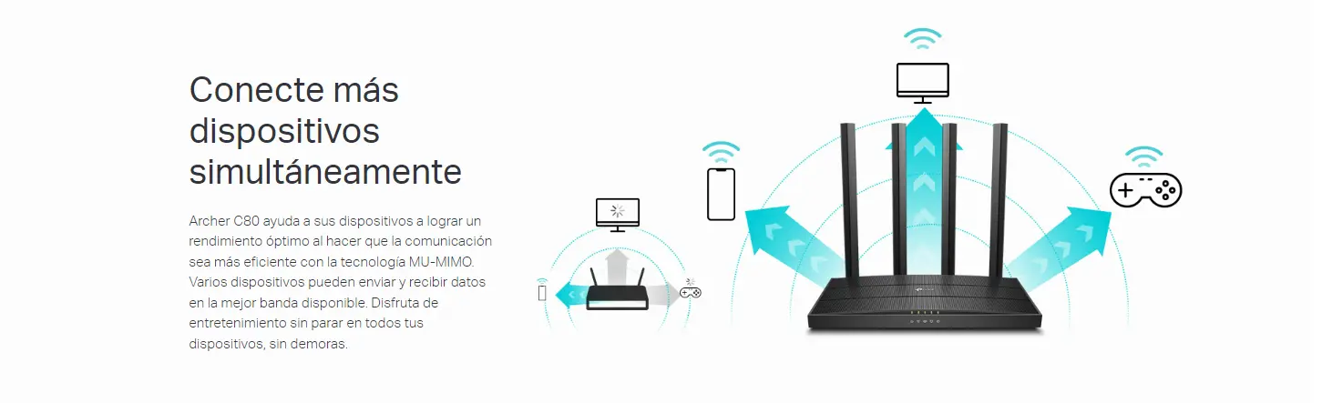 - Tecnología MIMO 3×3. Archer C80 se comunica con varios dispositivos a la vez aumentando el rendimiento y la estabilidad de la red
